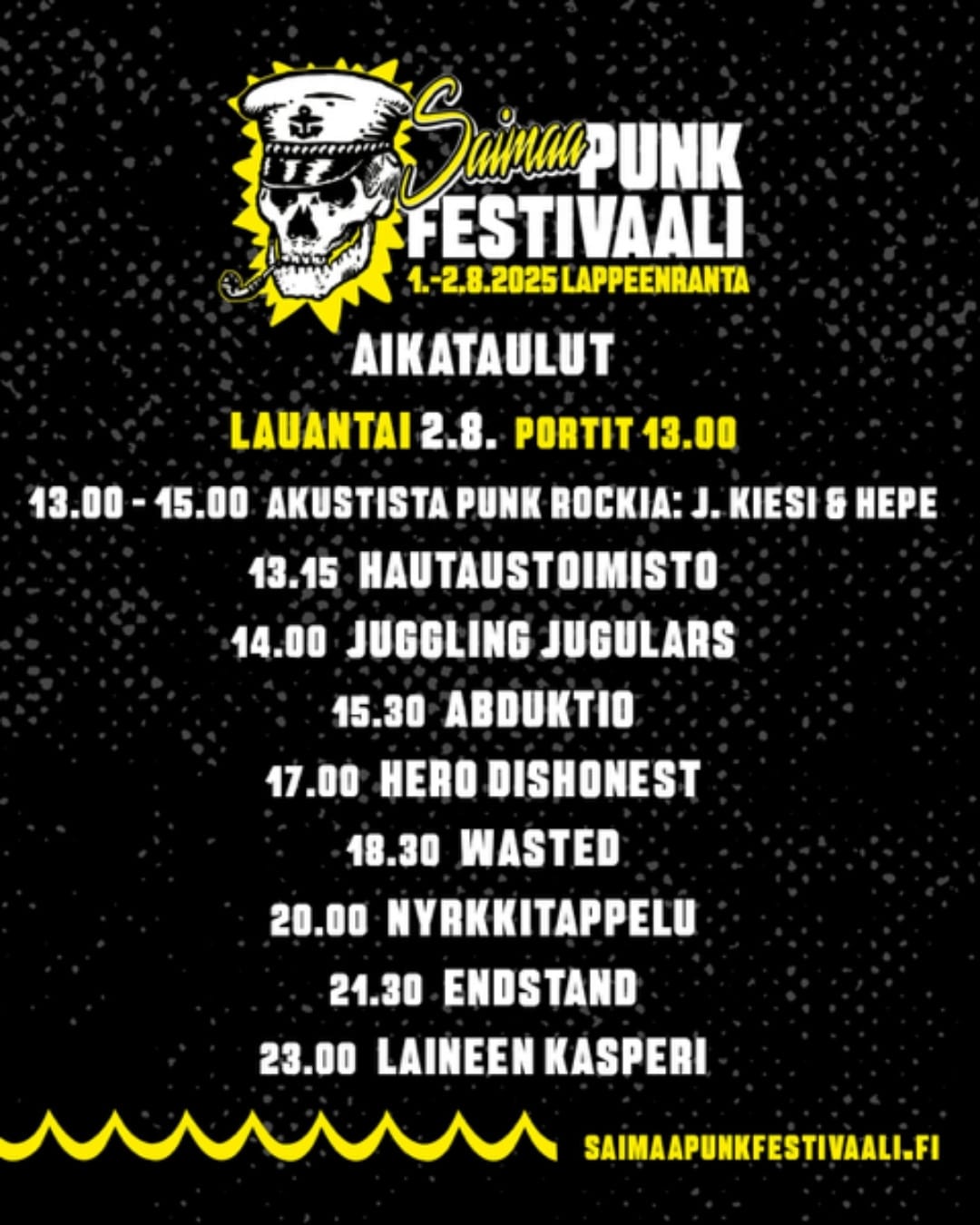 lauantain artistit saimaa punk festivaalien jatkoklubilla